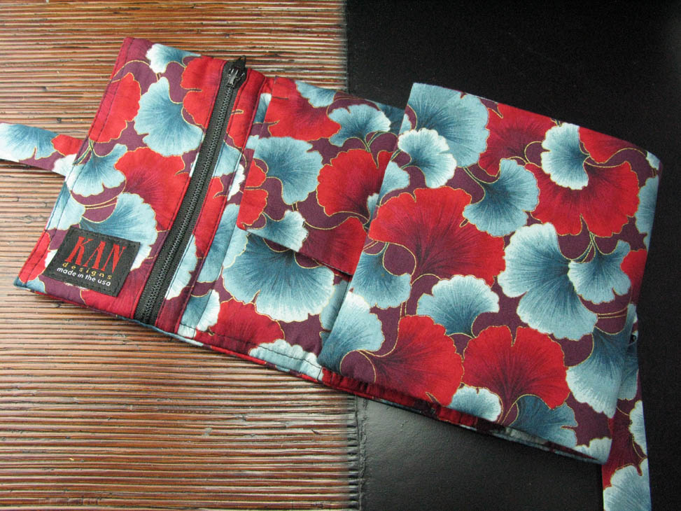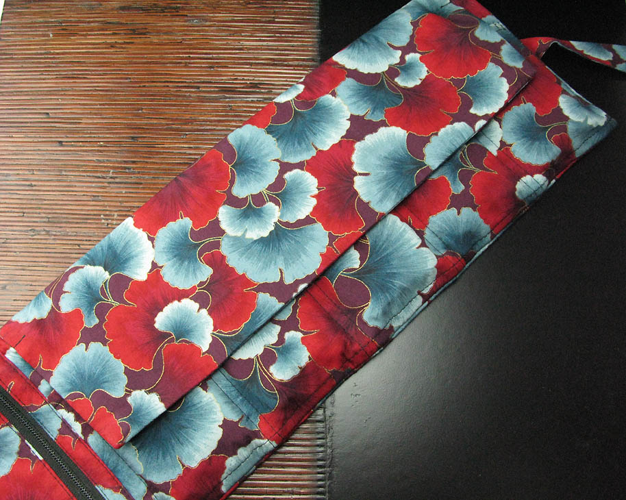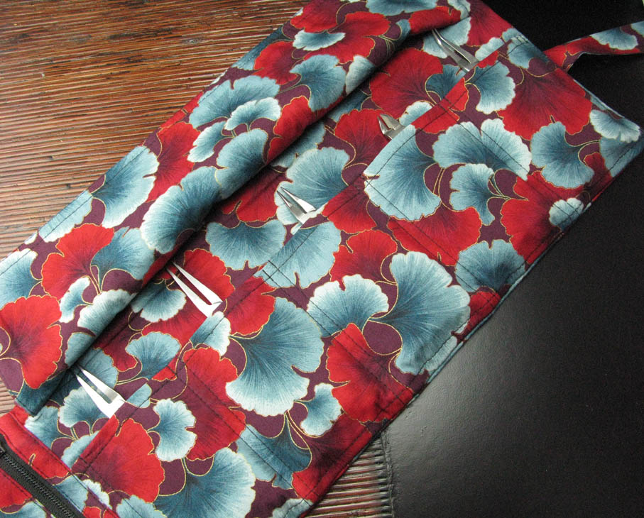 The tool wraps are made with designer fabrics from Robert Kaufman, Kona Bay,