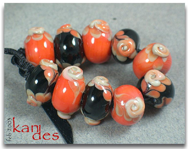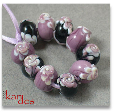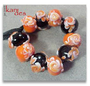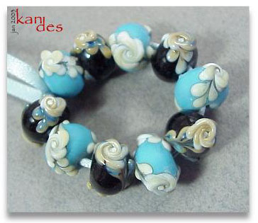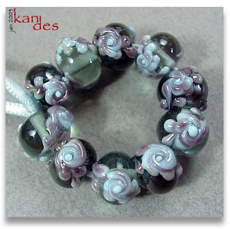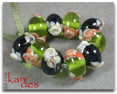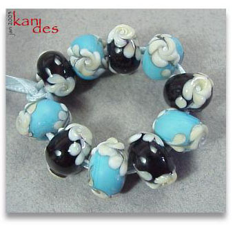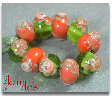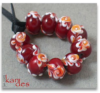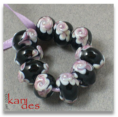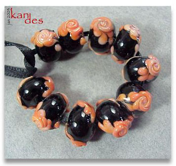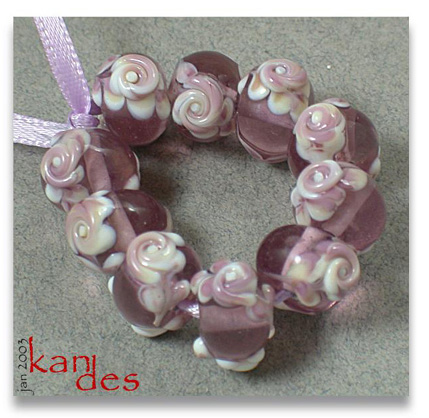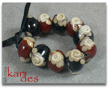 bead, decorated in a diagonal fashion. Usually the rosettes are ivory in