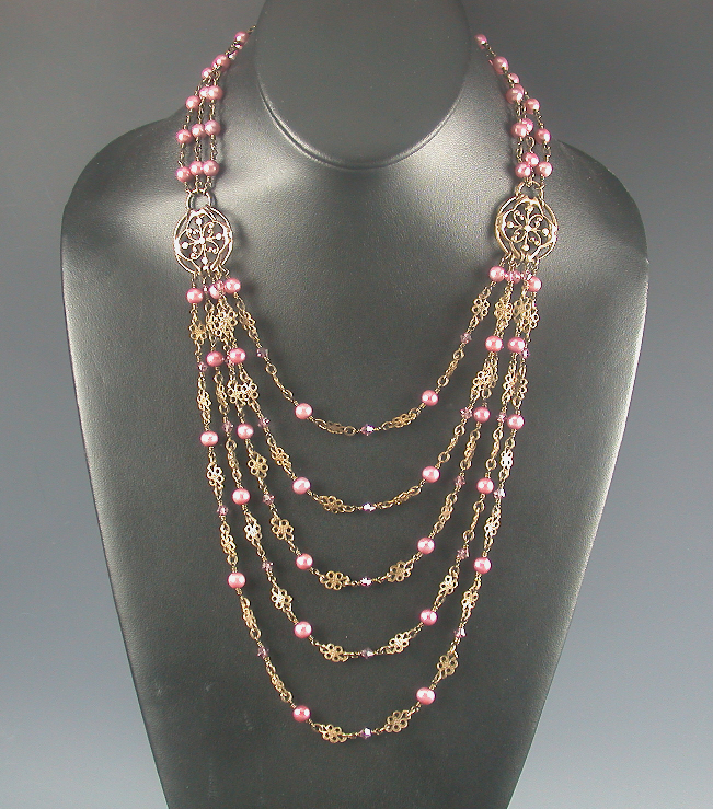 1 My second project for Australian Beading Magazine, Les Bijoux d'Amour, was inspired by my love of pearls. I use pearls in every imaginable shape, size and color in my work. This time around I wanted to challenge Aussie beaders to think outside of the box and use findings in other ways than they were intended. The magazine is yet available in the US but hopefully soon there will be a bookstore near you that carries this beautiful publication. The above necklace, although strung symmetrically, can be worn offset for an alternate version. You can find the project on pages 88-91. In this same issue, you will find Jean Yates' L-O-V-E-L-Y charm bracelet using my peachy borosilicate beads too (pages 32 - 36) which also happens to grace part of the cover.