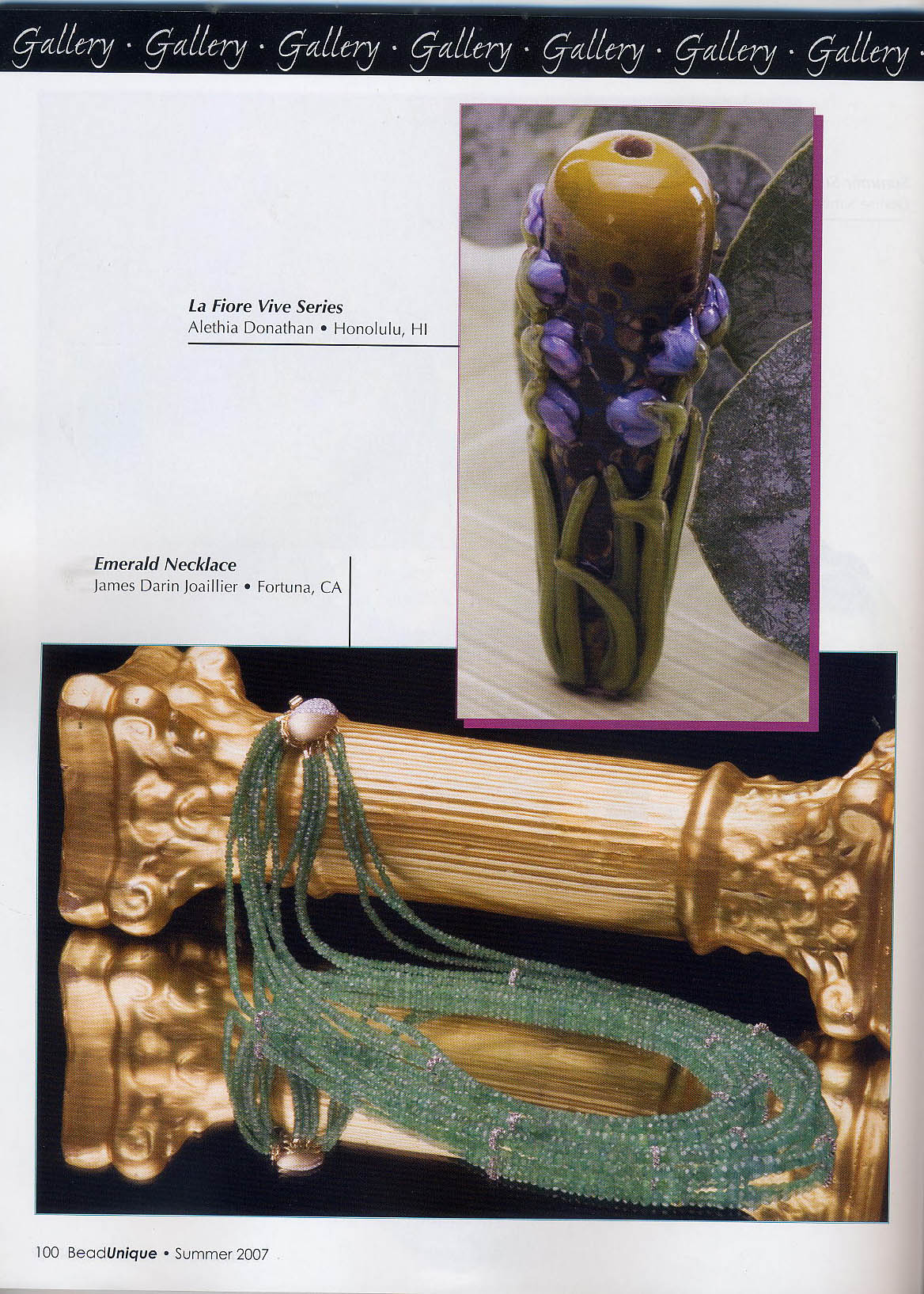 Bead Unique Magazine: Summer 2007, Issue #13Bead Unique featured the Le Fiore Vive series in their Summer 2007 issue. It is always an honor to be part of the Bead Unique publication. This time there was an editorial error and the bead was accidentally credited to Alethia Donathan. Big Oops! Alethia is a wonderful artist from Hawaii. Bead Unique Magazine has informed me that they will make a correction in the next issue and also provide a new photo of the bead. I appreciate the clarification as I've been making and improving the series since December 2002.